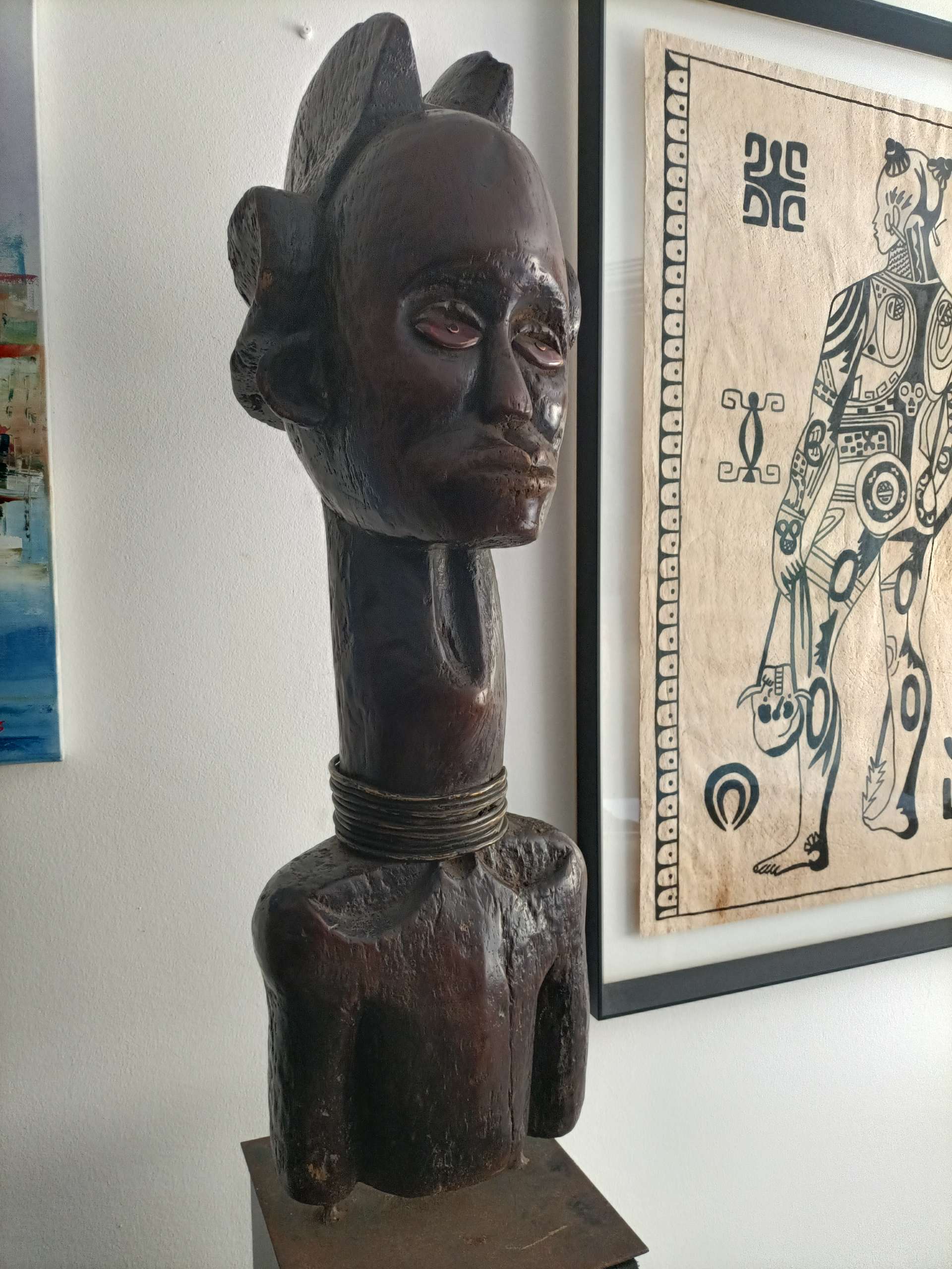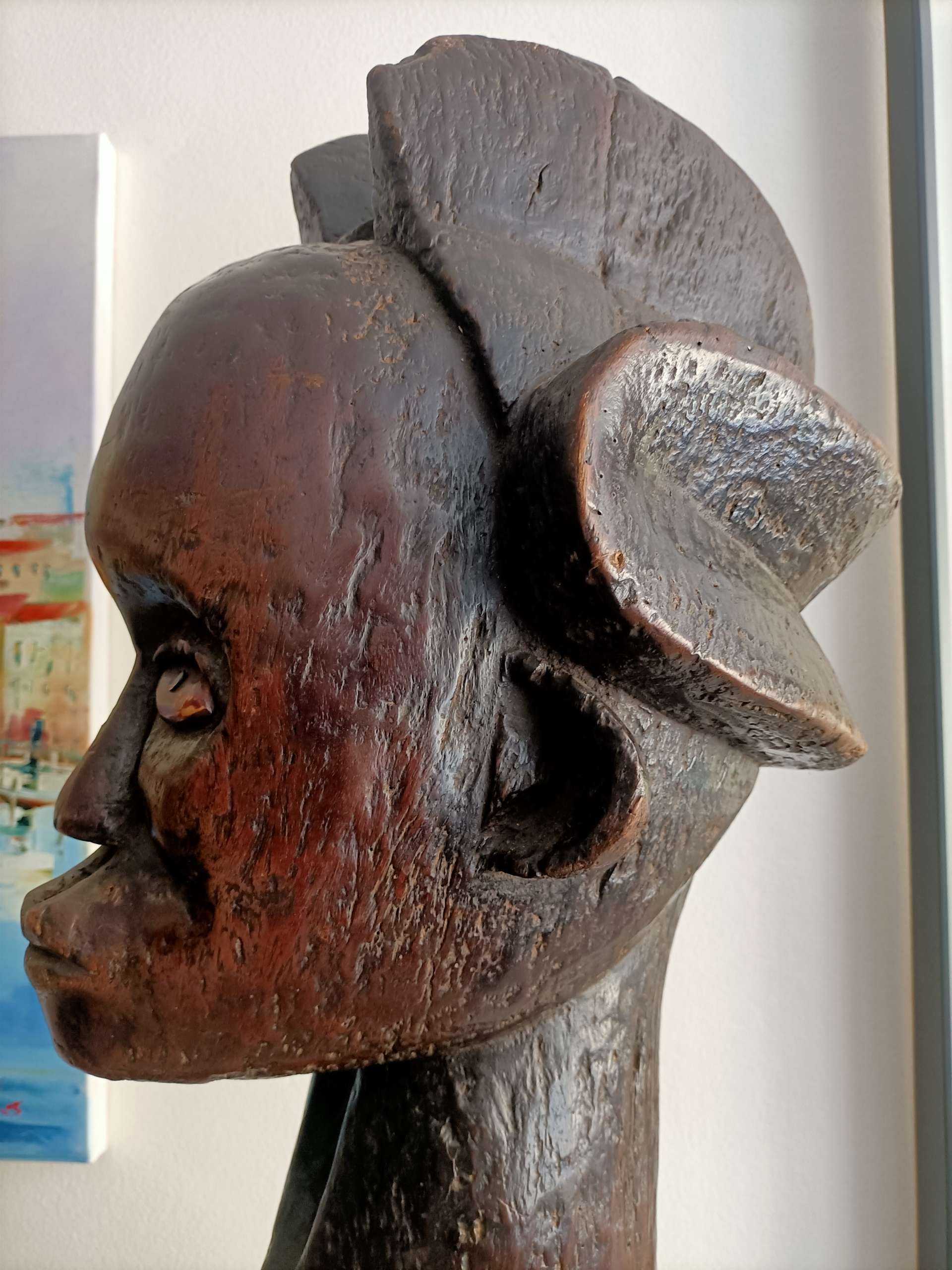 Extraordinário busto Fang recolhido próximo da fronteira com a Guiné Equatorial. As dimensões da peça, assim como o seu muito bom estado de conservação, fazem desta peça um exemplar raro desta etnia. Na nossa coleção aproximadamente desde 2000. Observe atentamente as fotos.